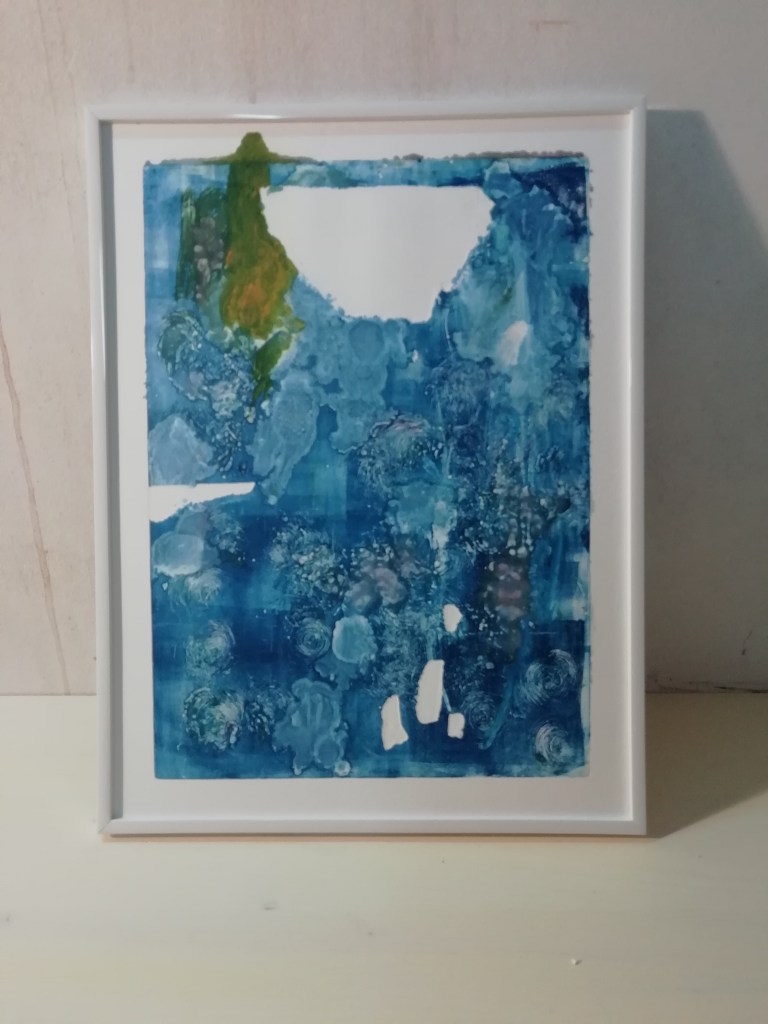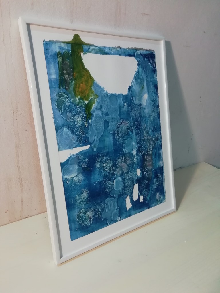 Marine è un “monotipo” di 30 cm x 40 cm, una stampa su carta rosaspina che si può incorniciare ed affiggere. Pezzo unico. Anno 2017
