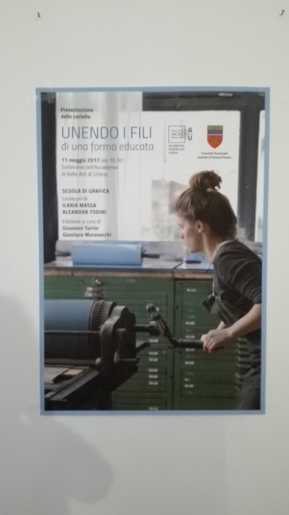 Pesaro dalle due studentesse del Biennio Specialistico in Edizioni e Illustrazione per la Grafica d’arte di Urbino, a cura di Giovanni Turria e Gianluca Murasecchi. Il progetto è stato presentato nei Sotterranei dell’Accademia di Belle Arti di Urbino ed in seguito collocato permanentemente nei locali del Comando Provinciale Guardia di Finanza di Pesaro. Alcune copie sono state donate.