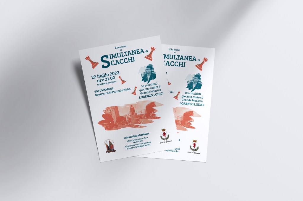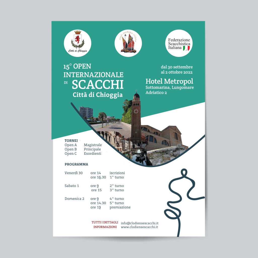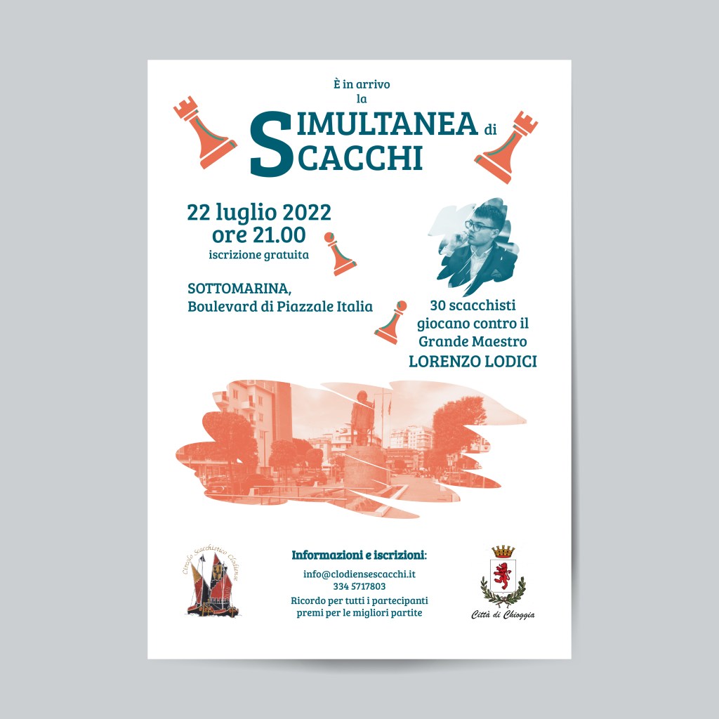 Il progetto grafico su commissione riguarda un ciclo di corsi ed eventi avviati dal “Circolo Scacchistico Clodiense” di Chioggia (VE), guidato dal Presidente Luca Bellemo, promotore di numerose iniziative. Il circolo ha tenuto negli anni numerosi corsi di scacchi adatti a tutte le età e ha organizzato eventi e gare di portata internazionale, come la Simultanea, con protagonista il Grande Maestro Lorenzo Lodici, o il Torneo Open Internazionale di scacchi.