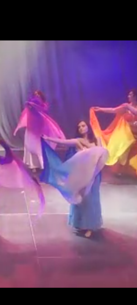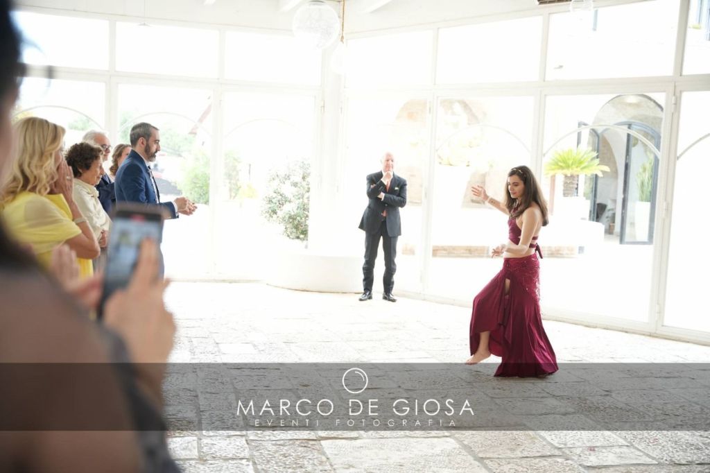 Ho studiato i miei primi movimenti presso la scuola di Marilena Iside De Letteriis “Le Ali di Iside”, una scuola costellata di personalità diverse ed entusiasmanti che hanno segnato la mia vita. Le persone conosciute qui hanno lasciato un solco indelebile nella mia formazione artistica e personale. Ho imparato ad utilizzare strumenti base come il velo e il bastone nello stile saidi in coreografie di gruppo.